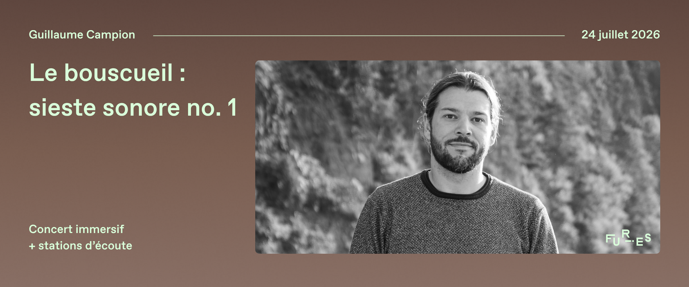 Le bouscueil, projet solo de l’artiste sonore Guillaume Campion, présente une sieste sonore comprovisée, conçue sur mesure pour FURIES. D’une durée de 60 minutes, l’expérience sonore immersive sera présentée en extérieur sur un système multiphonique, sur la terrasse de L’Hybride ㅡ café & librairie. Au gré d’improvisations scénarisées, l’œuvre entraînera les auditeur·trice·s dans un flux sonore apaisant, peignant un portrait onirique et impressionniste des paysages sonores de la Haute-Gaspésie, où se mêlent sons ambiants et instrumentaux.
